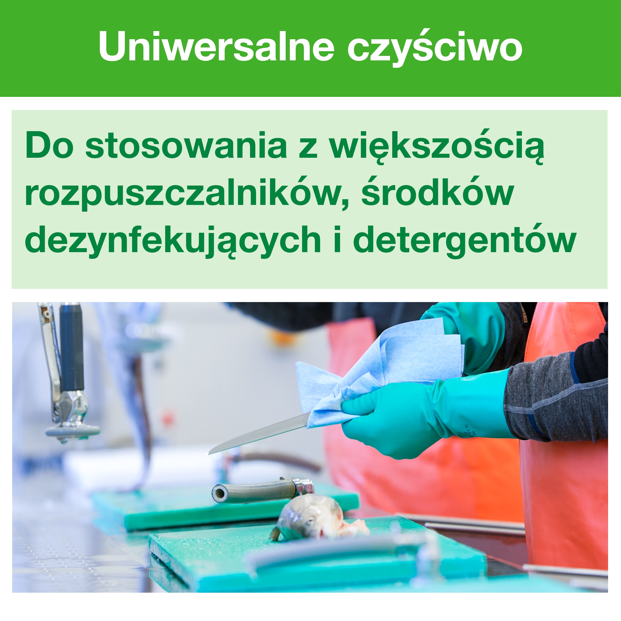 Nie musisz zmieniać swoich nawyków związanych ze sprzątaniem — te ściereczki można stosować z większością rozpuszczalników, środków dezynfekujących i detergentów.