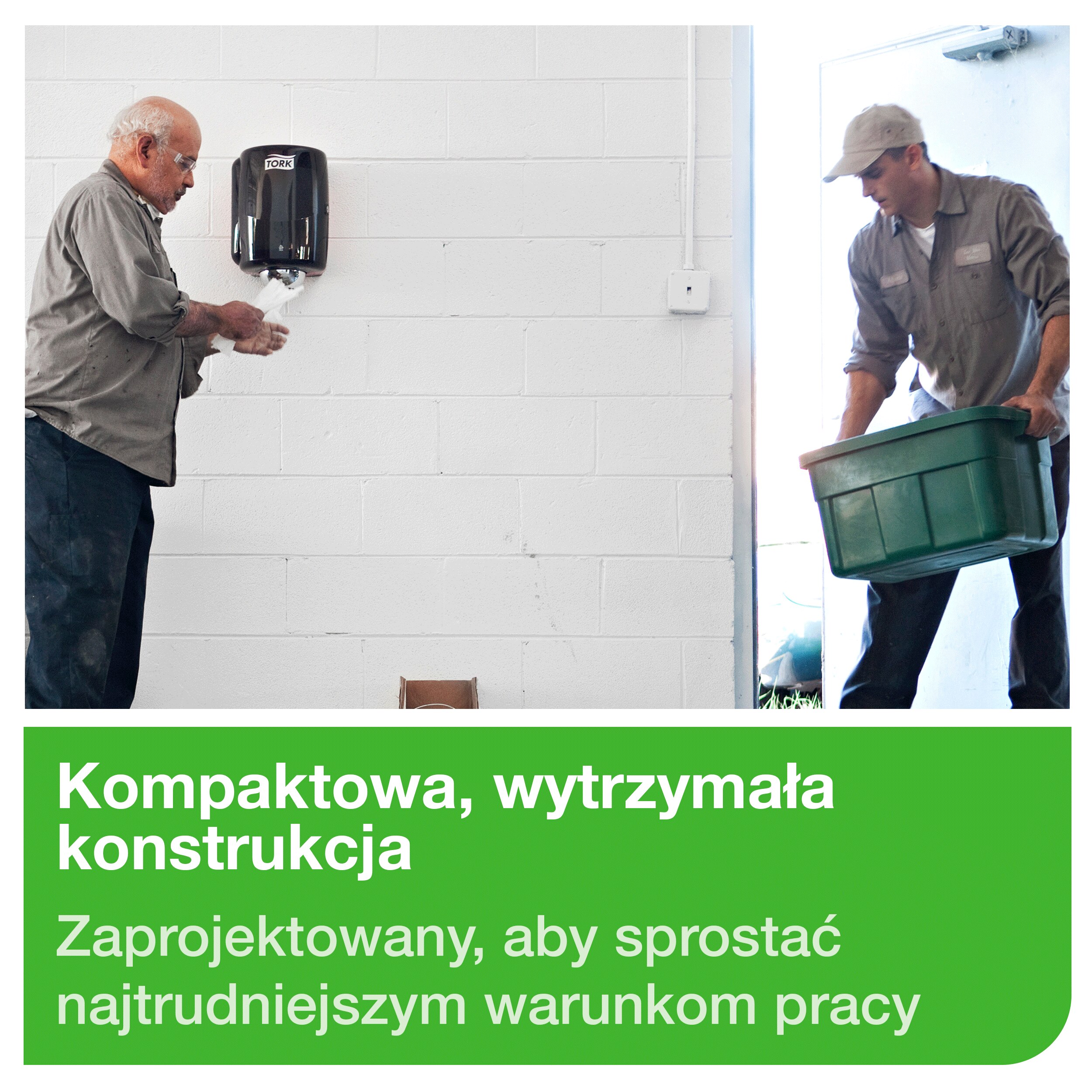 Nieodpowiednio dobrane wyposażenie może być przyczyną problemów i opóźnień. Wytrzymała i trwała konstrukcja systemu centralnego dozowania idealnie nadaje się do trudnych warunków. Dozowanie jedną ręką umożliwia szybsze odrywanie odcinków, zwiększając wydajność czyszczenia, z kolei pokrywa chroniąca zabezpiecza czyściwo i ręcznik papierowy, zapewniając wyższy poziom higieny. Łatwy w utrzymaniu w czystości i uzupełnianiu dozownik sprawia, że personel zyskuje więcej czasu na inne zadania, poprawiając wydajność w miejscu pracy.